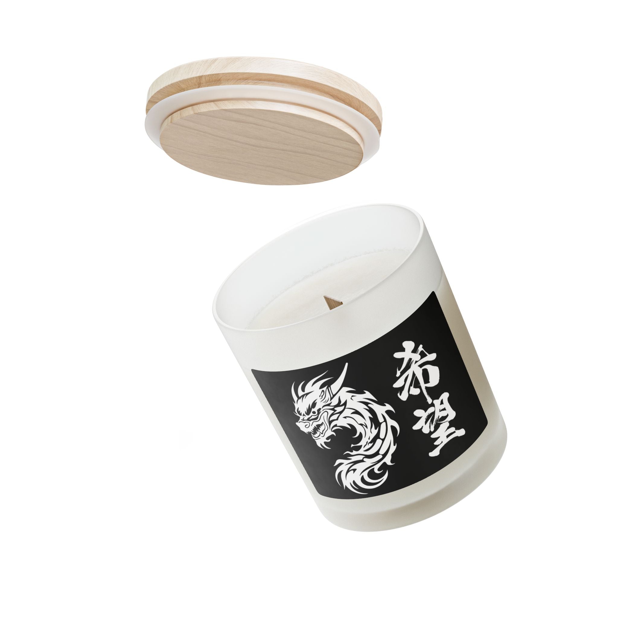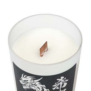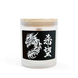 A bold dragon motif wrapping around the candle, paired with the Kanji “希望,” creates a captivating look.