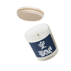 The dragon motif encircling or rising alongside the Kanji gives the candle a sense of power and guardianship.